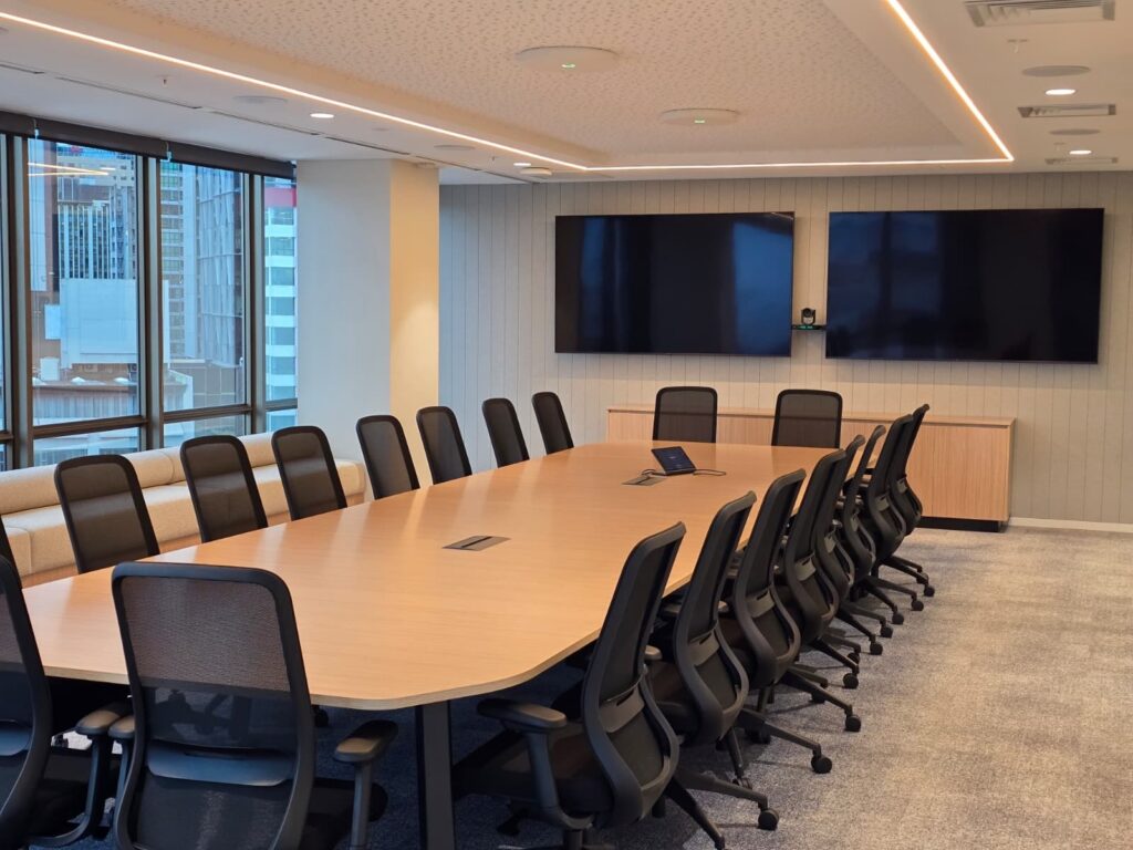 Audio is often the most overlooked element of a meeting space, yet it has the biggest impact on communication. By integrating ceiling microphone arrays, the rooms maintain a clean aesthetic while delivering clear, consistent audio capture throughout the space.